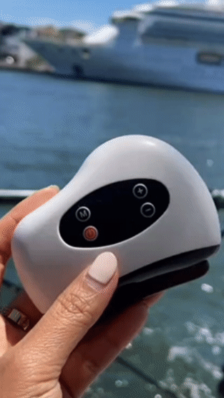 Com aquecimento, vibração e luz vermelha, ele ajuda a aliviar dores musculares enquanto melhora a aparência da pele.